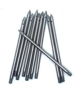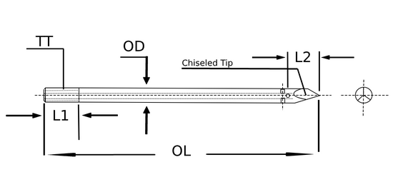 304-series stainless steel blow needles are designed for blow molding manufacturing processes to form plastic parts for end-users. These needles are designed with a chiseled-tip to help pierce thicker plastic more effectively and control where compressed air passes. These can be used in conjunction with our stainless steel and/or brass blow needle cylinders.